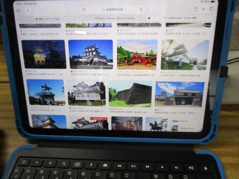 タブレットを使って、日本の様々な名所や特産品などを探していました。