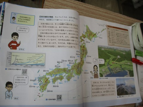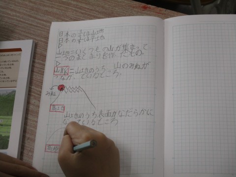 5年3組 社会「日本の地形の特色」 公開日 2026/04/27 更新日 2026/04/27 5年生 日本の国土には、多くの山地や山脈が見られるます。約4分の3が山地で、約4分の1の平地に多くの人が住んでいます。平地の中でも平野は海に面して広がっているね。 +2