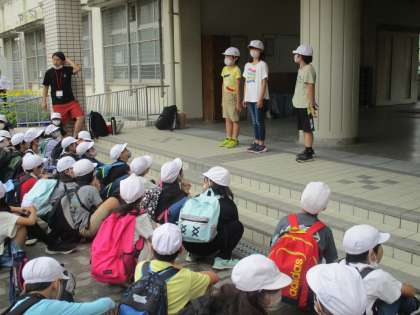 待ちに待った校外学習。実行委員の挨拶から始まりました。