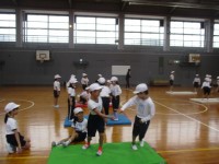 マットを使って様々な運動遊びに,楽しく体を動かしながら挑戦しています。2年生初め...