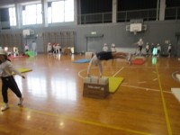 とび箱を使っていろいろな動きに挑戦しています。とびこしたり,転がったり,楽しみな...