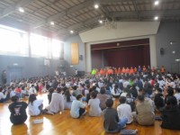 今日の全校朝会はテレビ放送で行いました。朝のあいさつをして、校歌の2番を歌った後...
