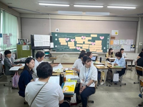 まず,教員同士で,単元指導、授業についてグループ討議をしました。