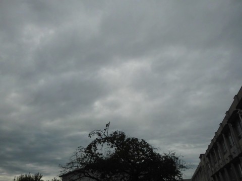 曇っています。その分、湿度は高いですが、気温が上がらなくてすみそうです。
