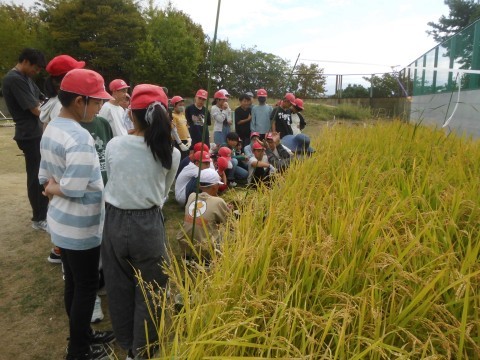 10(金) 5年生 総合的な学習♪ 公開日 2025/10/13 更新日 2025/10/13 5・6年 土づくりから始めて、今まで育ててきた稲を、地域の方のご指導の下、刈り取りました。刈り取った稲を干すことや、千歯こきを使って脱穀することもご指導いただきました。子どもたちは、興味をもってお話を聞いていました。お忙しい中、ご指導いただきありがとうございました。 +4