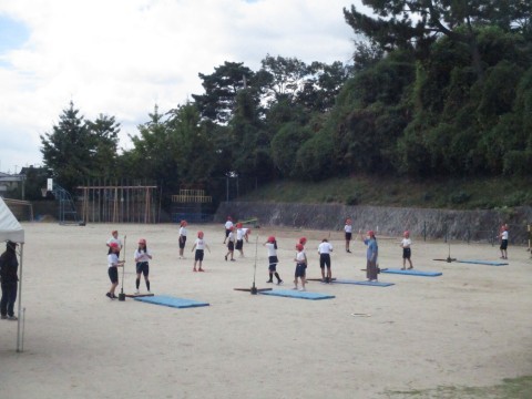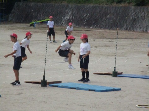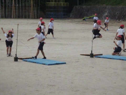 正面とびで足を高く上げること,ふみきる足を決めることを意識して取り組んでいます♪