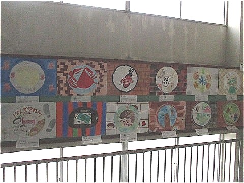 B階段の2階と3階の間に,5年生がデザインしたマンホールが掲示されています(^^♪