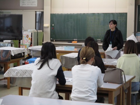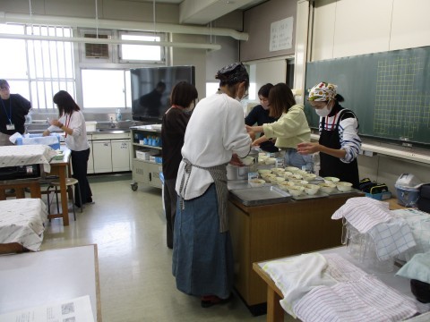 「学校給食ができるまで」のお話や「中学校給食」のお話を講師の先生にしていただきました。
