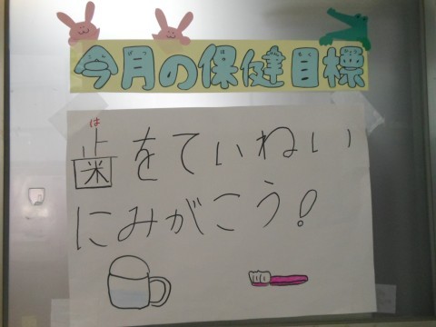 保健委員会の児童が,朝礼で11月の保健目標を発表しました。