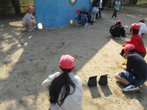 かがみではね返した光を集めると温度がどのように変化するのかを調べました♪