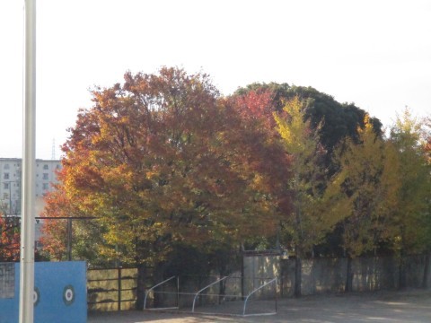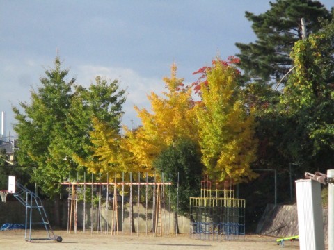 校庭のイチョウやけやきの木の葉がきれいに色づいています♪