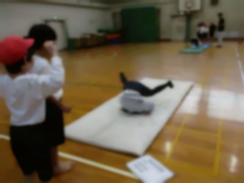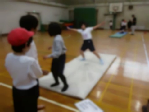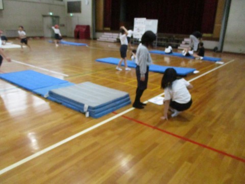 BGMを流しながら,マット運動のいろいろな技に取り組んでいました。
