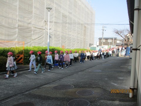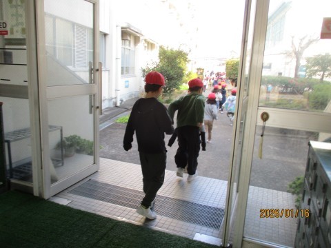 子どもたちは素早く避難して全体の指示する先生のお話を静かに聞くことができました。