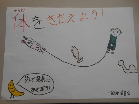 1月 保健目標 公開日 2026/01/19 更新日 2026/01/19 保健室から 保健委員会の児童が,朝礼で1月の保健目標を発表しました。 今月の保健目標は「体をきたえよう」です。 寒い日が続いていますが,休み時間には外で遊ぶ等,体をきたえましょう。また,運動をする前には準備運動をしっかりとして,けがをしないよう気をつけましょう。