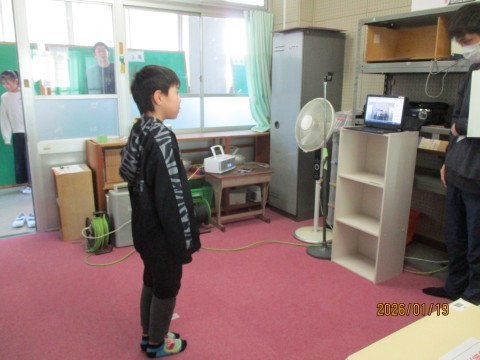 児童朝会♪ 公開日 2026/01/19 更新日 2026/01/19 学校 テレビ放送による児童朝会がありました。ゆうちょ銀行貯金箱コンクールとライオンズクラブ平和ポスターコンクールの表彰状を手渡しました。保健委員会から今月の目標のお知らせと,体育委員会からリズム体操をみんなでしました。