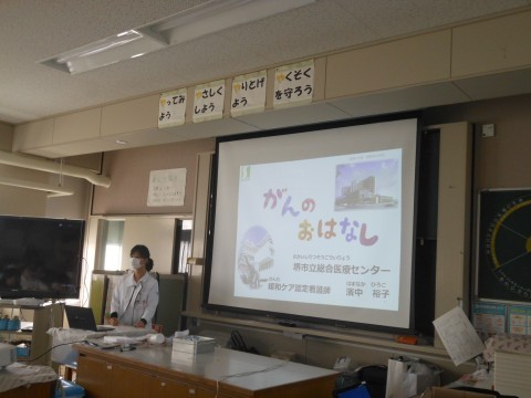 堺市立総合医療センター 緩和ケア認定看護師の濱中看護師さんに講師としてお越しいただき,がん教育を実施しました。