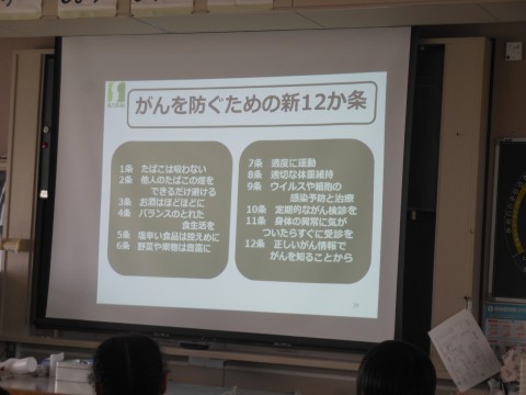正しい知識を持ち,将来の自分のためにどんなことができるのかを考えることの大切さを学びました。また,生活習慣やがん検診について等,ご家庭でも話をしてみてください。