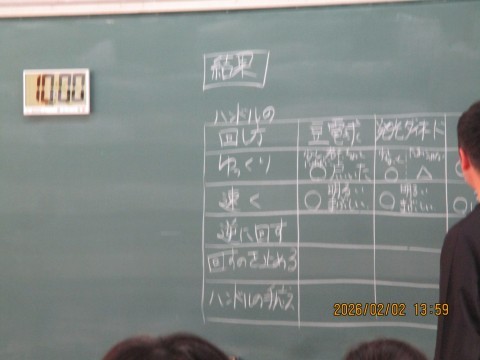 手回し発電機を使って、回し方を変えて発電させたとき、どのような変化があるのかを確認しました。