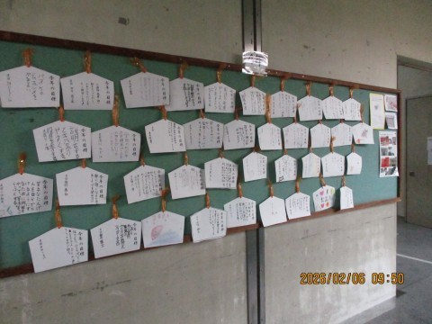4年生の教室近くの掲示板に、絵馬の形をした「今年の目標」が飾られています♪