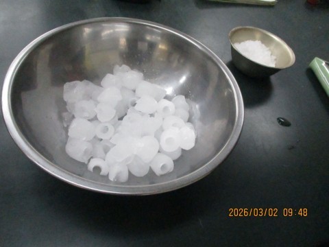 冷やすのに食塩と氷を使いました♪