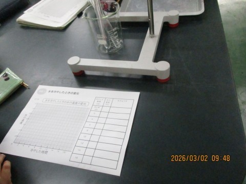 水を冷やしたときの様子と温度の変化を調べました。