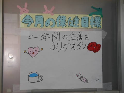 今月の保健目標は「1年間の生活をふりかえろう」です。