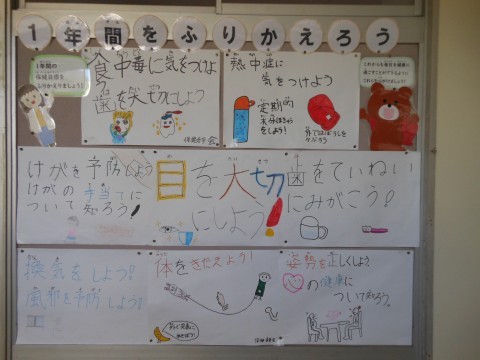 保健室前に,これまでの保健目標を掲示しています。これまでの保健目標を振り返り,今後も健康にすごすことができるように心がけてくださいね。