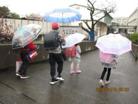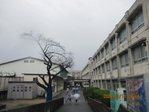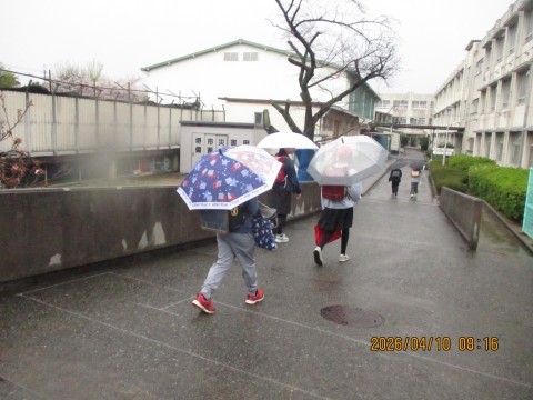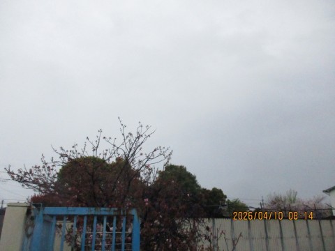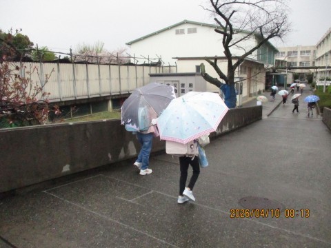 しとしとと雨が降っていて,傘の花が開いています。夕方ごろまで降り続くとの予報です。
