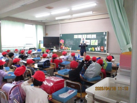 西堺警察署より,警察官の方に来ていただき,安全な歩行の仕方について,教えていただきました。
