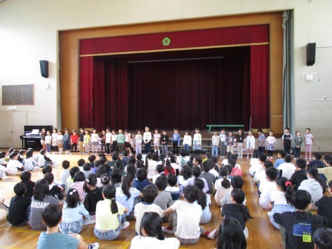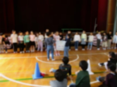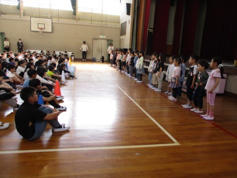 はじめて,体育館でみんなで一同に集まることができました♪