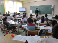 3年生は毛筆で正月の文字を書いていました。はねはらいおれに気を付けて書いていました。