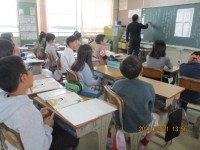 5年生は毛筆を使って星ふる町の文字を練習していました。
