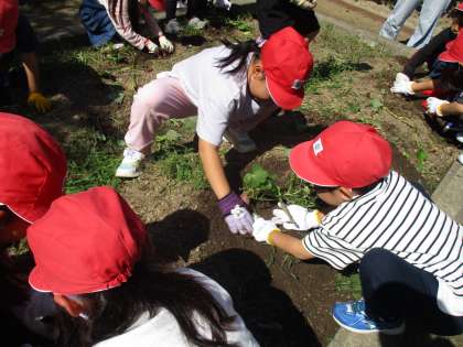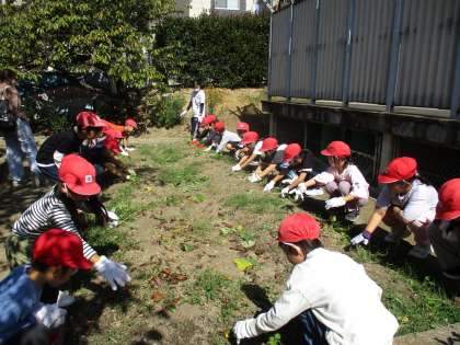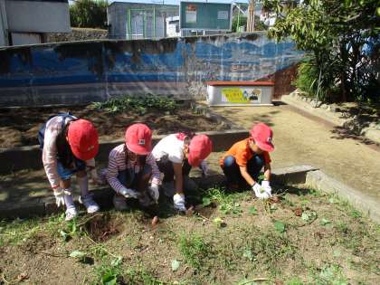 さつまいも堀り(1年) 公開日 2023/10/12 更新日 2023/10/12 1・2年 さつまいも堀りをしました。大きなおいもがたくさんとれました。何にして食べようかなと迷いながら掘っていました。