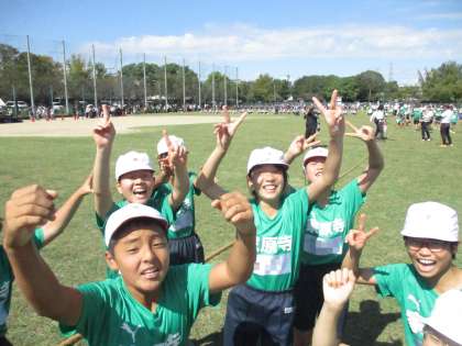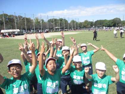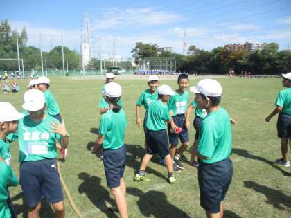 第72回堺市立小学校連合運動会 (5) 公開日 2023/10/12 更新日 2023/10/12 5・6年 最高の笑顔を見ることができました!決勝戦でAチームとBチームで戦えるように!と頑張った結果、小規模校の部で決勝戦がAチーム対Bチームになりました。決勝戦はみんなで楽しもうと全力を尽くしました。お互いをたたえあう姿がすばらしかったです。優勝と準優勝という結果になりました。今までの練習をよく頑張ってきました。この思い出を大切にこれからも力を合わせて成長していきましょう。