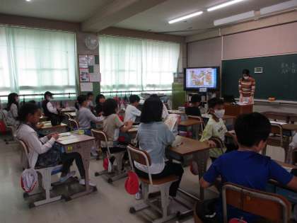 3年生 算数 4年生社会 外国語 公開日 2023/10/17 更新日 2023/10/17 3・4年 3年生は算数で練習問題の答え合わせをしていました。 4年生は社会科で伝統工芸のトンボ玉の学習をしていました。トンボ玉の材料支援の人のお話について考えを出していました。 外国語の学習もありました。