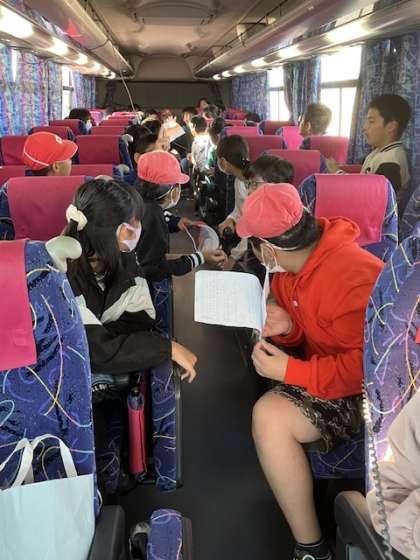 6年 修学旅行 バスレク 公開日 2023/10/24 更新日 2023/10/24 5・6年 高速に乗ってバスレクが始まりました。カラオケ大会で六甲おろしを歌っていました。この後、6年アーティストがお気に入りの曲を披露してくれます。みんなの歌声が聞けるにぎやかな楽しいバスレクです。