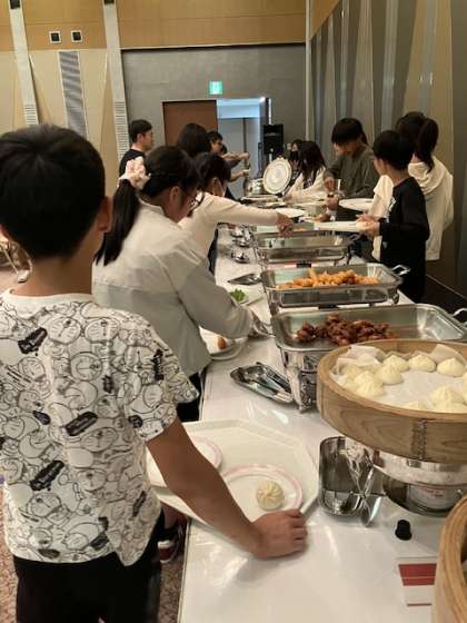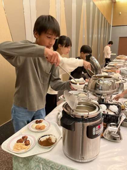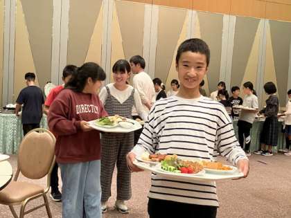 たくさん活動したのでお腹が空いたことでしょう。夕食はバイキングです。たくさん食べてくださいね。