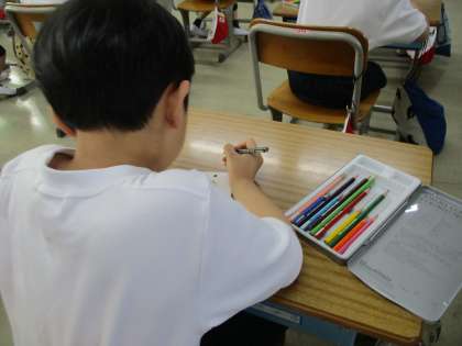 自分の名前のカードに色鉛筆を使って彩っています♪