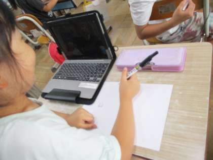 おうちの人の写真から絵を描いていました♪