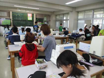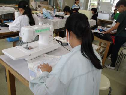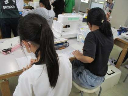 エプロンづくりで、アイロンをあてたりミシン掛けをしました♪