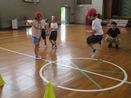 7/2(火) 2年生 体育 公開日 2024/07/02 更新日 2024/07/02 1・2年 学年で8の字とびに取り組んでいます。 ビデオにとりながら、うまくとぶにはどうすればよいかをみんなで考えています。