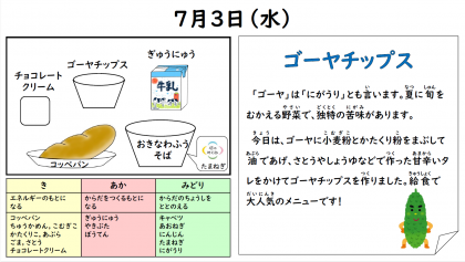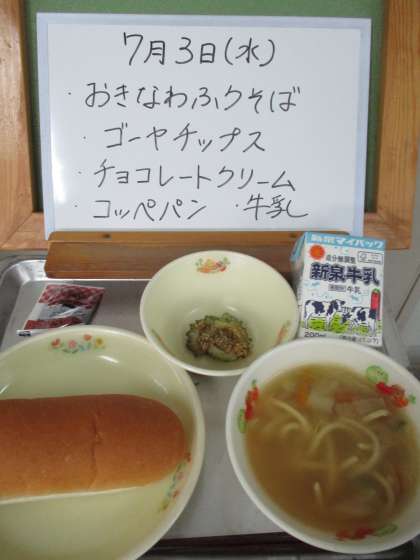 今日もおいしくいただきました。 沖縄料理でした。 給食調理員さん、いつもありがとうございます。