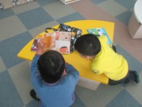1年生の図書の時間。低学年学校図書館で,1年生が好きな本を選んで集中して本を読ん...