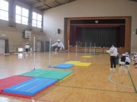 6年生の体育館での体育は,走り高跳びの学習をしています。今日も,助走や踏み切りに...