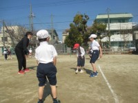 1年生が体育の時間に3人一組でなわとびをしていました。「ゆうびんやさん おはよう...
