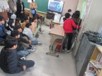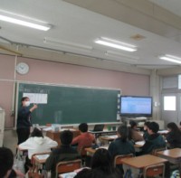 4年生が図工の時間に鑑賞をしていました。友だちの版画の作品をタブレットで撮影して...