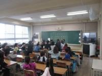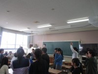 6年生が授業の終わりのあいさつの仕方を一緒に確認していました。これは卒業式に向け...