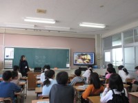 6年生が外国語の授業をしていました。NS(ネイティブスピーカー)の先生がスライド...
