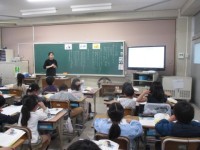 1年生が国語の時間に,ひらがなで自分の名前を書いていました。いい姿勢で,ていねい...