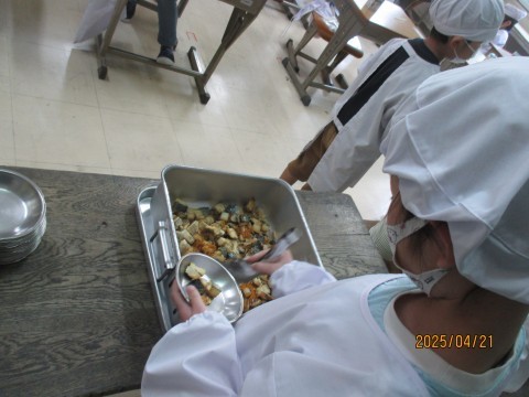 給食の準備にもすっかり慣れ、スムーズに配膳ができるようになってきました。